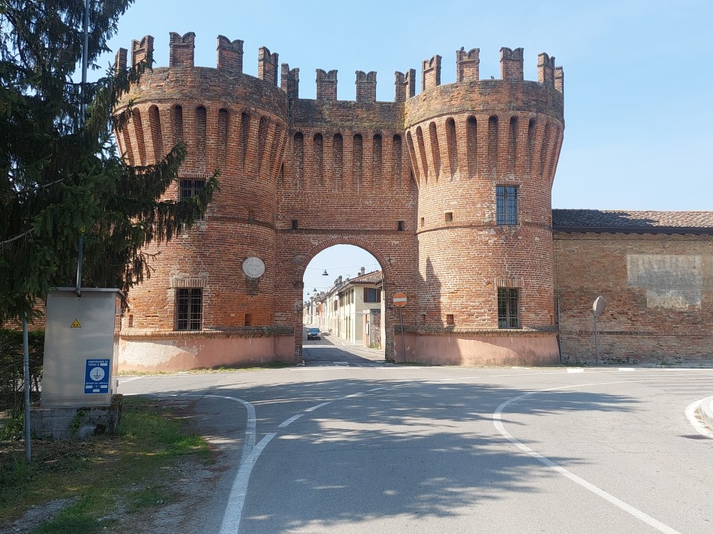 8 h pile nous sommes d’accord, Pierre et moi, sur la direction puis le chemin à prendre pour démarrer notre étape, ce qui fait que nous sortons aisément de Piacenza et comme en ce frais samedi l’Italien se repose de sa semaine de dur labeur et n’a pas sorti la voiture du garage, nous sommes un peu seuls sur la route et nous apprécions d’avancer tranquillement, quand je dis que nous sommes d’accord ce sont surtout nos instruments électroniques de guidage qui ne sont pas en phase, ou plutôt, je ne sais pas toujours bien interpréter ce qu’ils essaient de me montrer et ce matin après avoir chaussé mes lunettes, tout m’apparait bien plus clair. Pierre m’avait prévenu, la première partie du trajet sera similaire à celle de la veille jusqu’à Cremona située à 35 km et voilà qu’après 5 km, un panneau nous indique Cremona à 42 km, Pierre aurait-il menti, nous serions nous trompé de sens, le temps de trouver la réponse une autre indication nous fait faire un bond quantique pour nous retrouver à 25 km, qui deviendront peu après 29 et c’est à ce moment que Pierre se met à hurler, il a oublié son téléphone … qui est dans son sac quelques secondes plus tard, nous sommes coutumiers de ce type d’angoisse assez régulièrement bien que nous ayons le plus souvent vérifié au moins deux fois que tout était dans nos bagages,