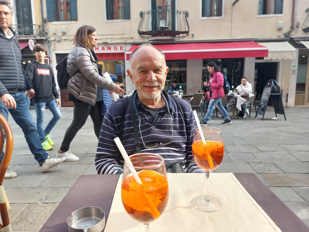 Venise se découvre après 18 H quand toute la foule est repartie sur les vaporettos Il ne reste plus que les Vénitiens et quelques touristes privilégiés…Le spritz était incontournable 😋 je reconnais ..