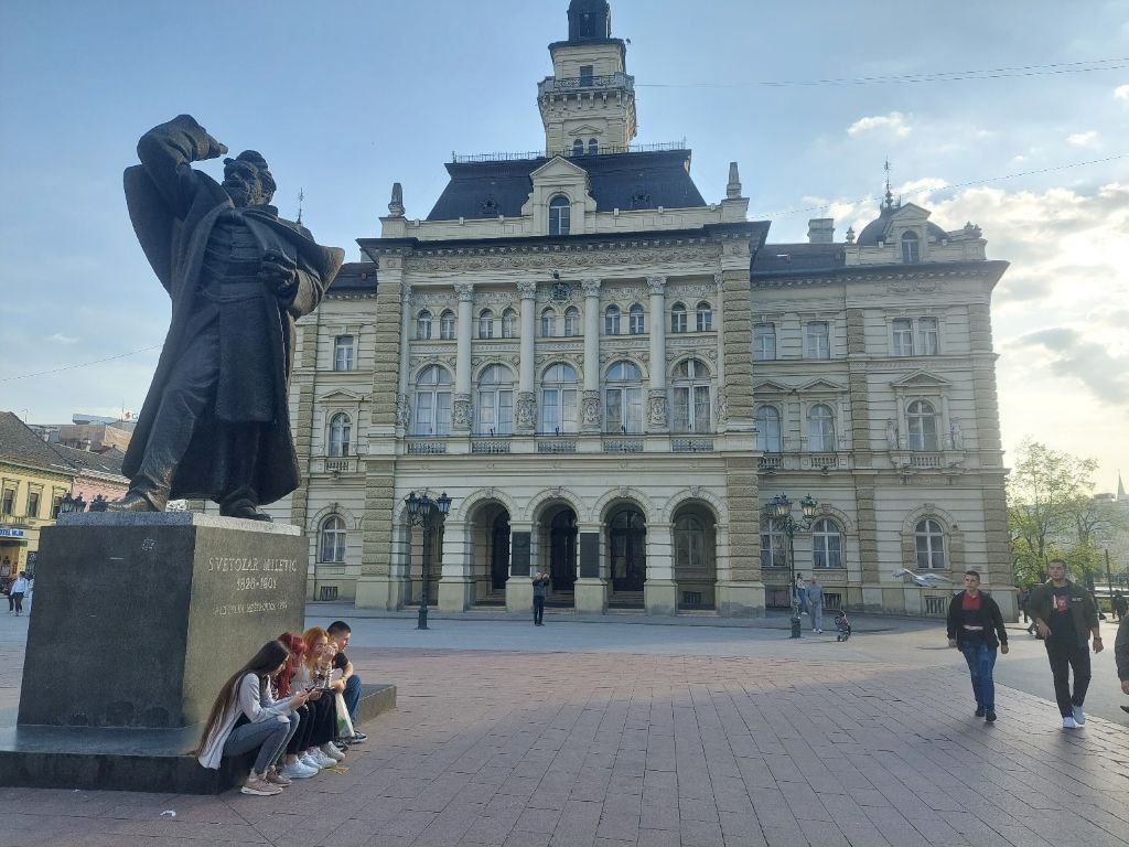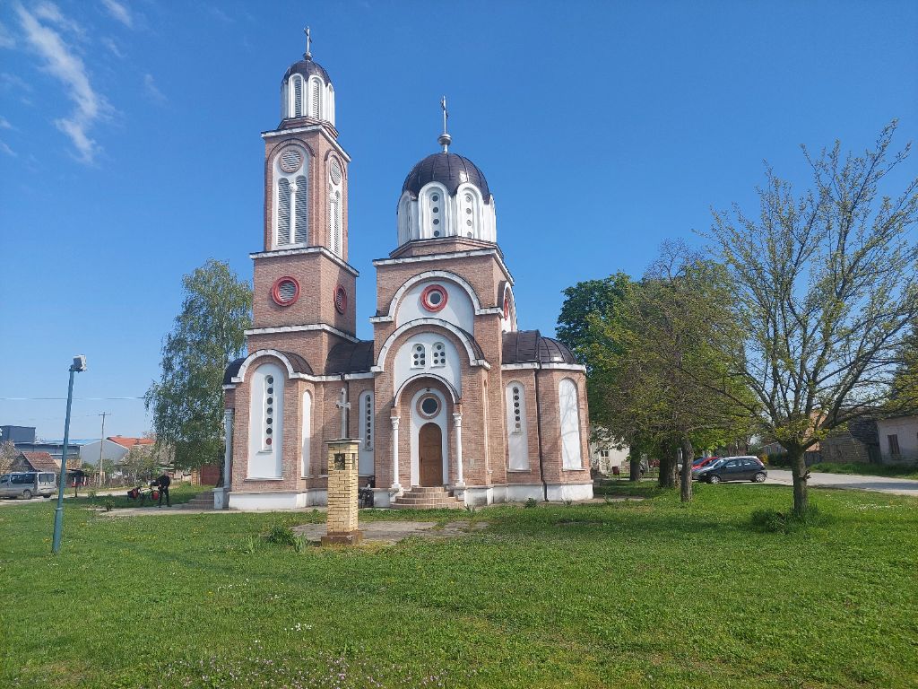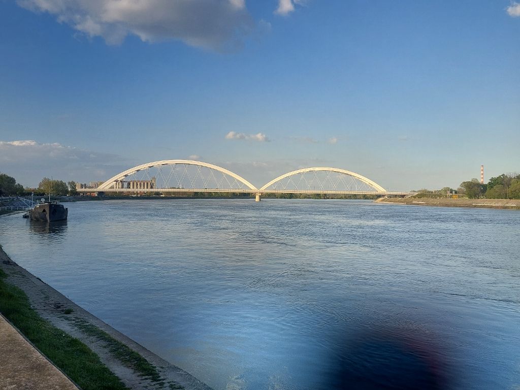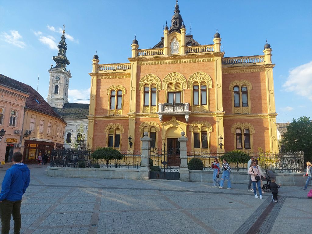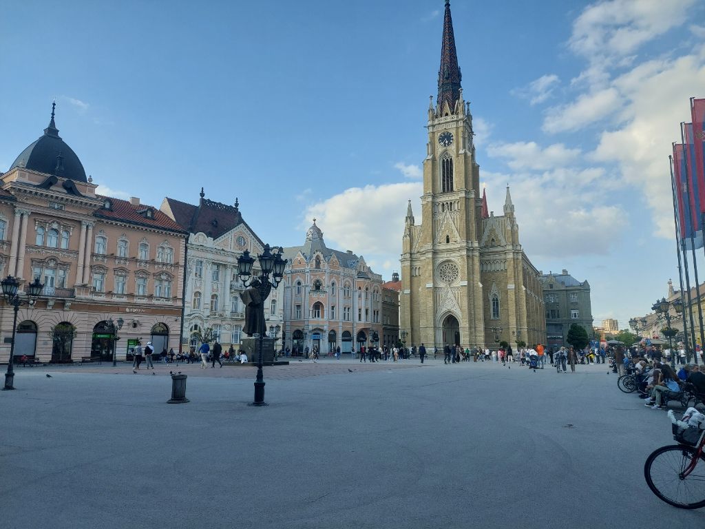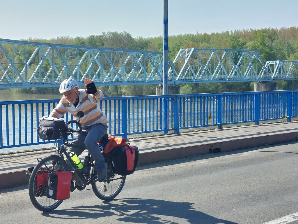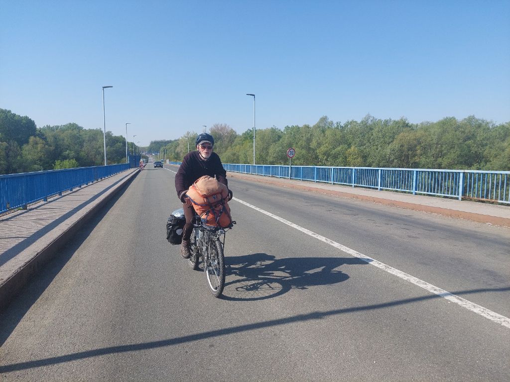 Ce matin, direction la Serbie, j’ai mis mon téléphone hors service pour éviter les surcouts en dehors de l’union européenne, comme les enfants à qui on confisque le smartphone, il va falloir s’en passer jusqu’au soir au moins où nous devrions retrouver le WiFi. La sortie de Osijek est assez facile, nous naviguons entre route et piste cyclable d’un côté de l’autre, puis fin de la ville, fin de la piste, la circulation est modérée ça va, route barrée pour travaux, nous passons, on ne sait jamais la longueur du détour, sachant que plus de 100 km nous attendent, ne les faisons pas languir, en fait les ouvriers travaillent pour nous puisque c’est la création en site propre d’une portion de route vélo, là aussi nous n’attendons pas la fin du chantier, ce sera pour les suivants. Petite appréhension à l’approche de la douane, nous ralentissons, prenons la file voiture et passons sans voir personne dans le guichet, nous sommes hélés par le douanier Croate, c’est à gauche côté conducteur qu’il faut montrer nos passeports, nous traversons ensuite la Drava, la séparation entre les deux pays est au milieu, deux imposants battants de porte, ouverte, matérialisent la possibilité de fermer la frontière, pas rassurant quand on connaît l’histoire, côté Serbe, nous passons devant les camions qui nous avaient doublé auparavant, passage réussi devant le douanier serbe, nos passeports sont un bon sésame. Les premiers tours de roue en Serbie montrent un paysage non habité, non cultivé, une sorte de no man’s land, favorable à la biodiversité certainement coasse le premier être qui m’interpelle, se fichant pas mal des races, nations ou ethnies. Premier village, son église en ligne de mire, nous faisons une halte, et prenons un peu de temps pour découvrir comment nous pouvons percevoir, de l’extérieur évidemment, la vie, car si la commune est petite, il y a de la vie sous le soleil, les gens vont et viennent à pieds, à vélo, s’interpellent, s’arrêtent pour un brin de causette, le vélo transporte tout les courses, les outils, les gens, je retrouverai cette atmosphère dans les quelques communes que nous traversons, un air du sud, on vit dans la rue, les magasins débordent dans la rue, les terrasses sont occupées. La configuration est similaire à ce qui existe en Croatie, héritée de feue la Yougoslavie, deux églises cohabitent, orthodoxes et catholique, souvent assez similaires, Pierre me montre comment la forme de la croix permet de les différencier, l’écriture cyrillique cyrillique me déroute, même s’il y a aussi l’écriture en alphabet latin, Pierre connaissant le russe est heureux de lire à nouveau ses caractères et déchiffre pancartes et panneaux. Entre les villages, c’est la plaine cultivée, pas de grande différence avec le pays voisin, peut-être des champs encore plus grands, terre noire sillonnée par quelques tracteurs, les surfaces sont si grandes que ce gigantisme n’a plus rien d’humain, seules verticalités, les silos sont les froides cathédrales de notre abondance, les antennes relais les clochers des réseaux sociaux … que je rejoins assoiffé d’octets quand on tombe sur un point d’accès Wi-Fi à Bacski Petronrev. Arrivée à Novi sad, beaucoup de voitures nous restons sur les pistes cyclables, nous irons ensuite visiter la ville, grouillante de monde, terrasses pleines, familles, enfants, jeunes vieux profitent du soleil, nous allons jusqu’aux rives du Danube.