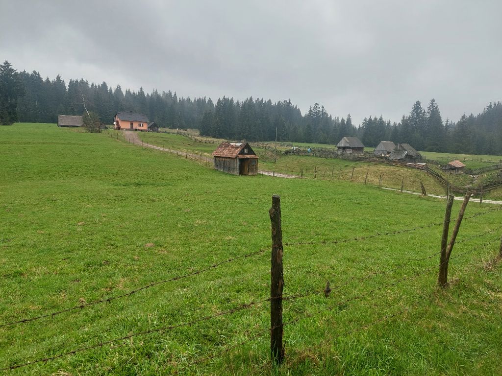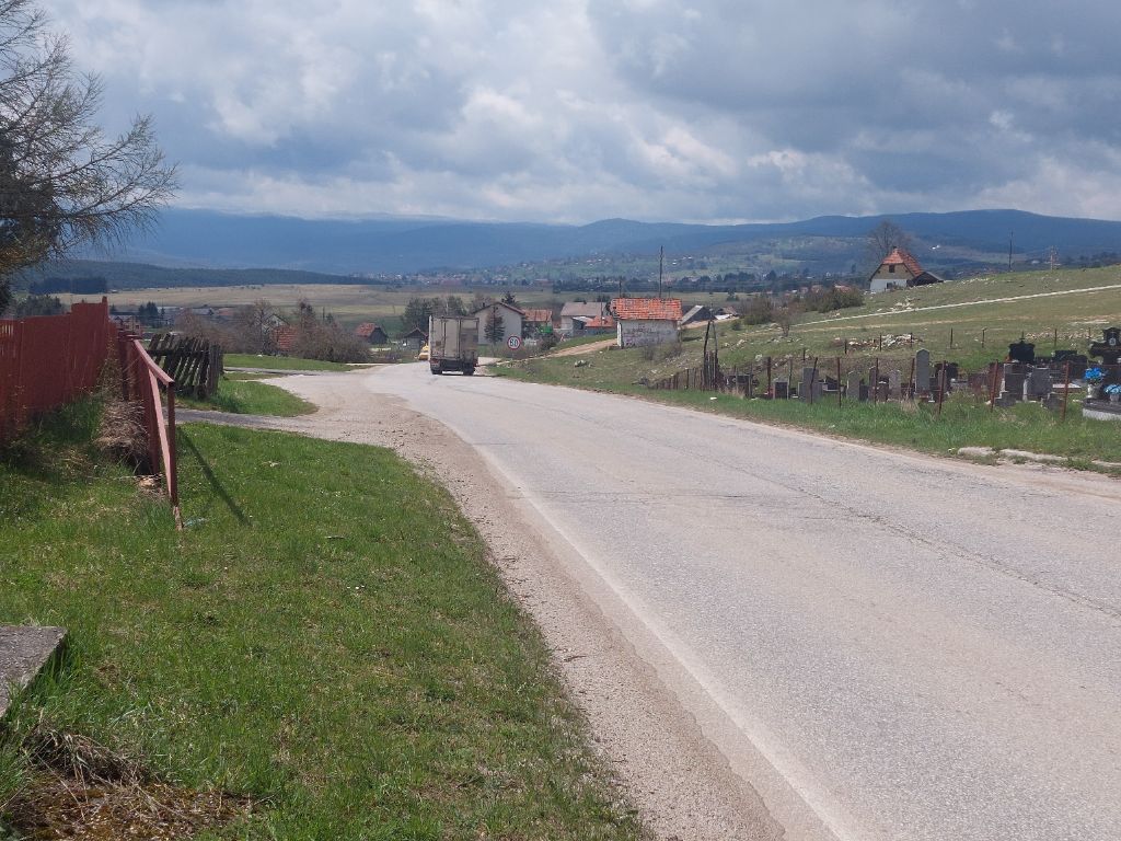 Nos vélos harnachés, quasiment prêts à partir nous nous rendons dans la salle du restaurant pour le petit déjeuner espérant ne pas revivre la plaisanterie de Slatina, nous nous installons sous la pancarte interdiction de fumer, c’est la place de la pièce du non fumeur, café oui, pas de lait et le serveur nous met sur la table une petite carte sur laquelle sont inscrits les plats à choisir, ce sera omelette au jambon, fromage, assiette décorée de rondelles de tomates, pain beurre confiture, nous voilà lestés pour la première ascension du jour qui commence sous un peu de pluie, dans un léger brouillard vraisemblablement lié à une très grosse averse nocturne. La montée s’étend sur 12 km, c’est assez régulier, la pluie tombe et le brouillard s’épaississant empêche de profiter des vues et de la forêt, la température a bien baissé (3°) nous atteignons le sommet, halte sous un abri un peu venté, j’aperçois des lumières toutes proches et c’est un restaurant ouvert, la grande cheminée brûle abondamment, je rentre, cette douce chaleur et bien sûr tout ce que l’on souhaite est servi, c’est cadeau. Nous quittons la république Serbe (republica Srpska) de la fédération de Bosnie.