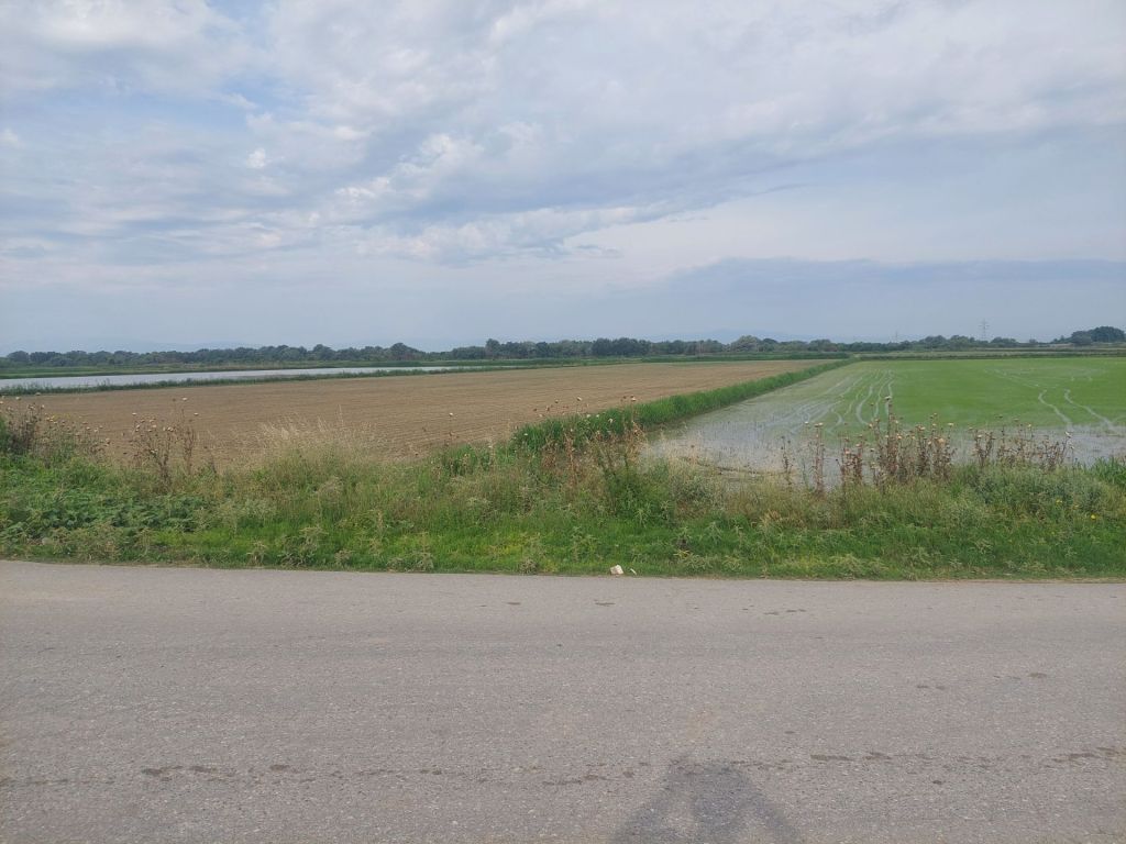 Le profil de la journée était simple, 92 kilomètres de plat, 3 de montée pour arriver à Edessa, dernière étape en Grèce. Le marché s’installe pendant que nous enfourchons nos vélos, traversée de Thessalonique facile, il y a peu de monde, première embûche, nous avons quitté notre route dans une zone en travaux et avons un peu de mal à retrouver notre destination dans la zone industrielle. Nous la parcourons longuement, poursuivis pas des chiens agressifs envers les cyclistes encore une fois, pourtant jamais un vélo n’a écrasé de chien, ce doit être d’anciennes mémoires de chasse en meute et ils nous prennent pour des cerfs, je suis preneur de toute autre explication et solution. La route est en état moyen, sur le bord nous profitons des plaques d’égouts, des grilles d’évacuation d’eau pluviale, du gravier accumulé, de la vue sur les déchets tombés des voitures. Désagrément plus récent, les sillons creusés, par les trancheuses qui posent la fibre optique et tout ça pour une informatique qui n’en finit pas de perturber nos vies, nous vendant le meilleur, alors nous sommes invités à nous protéger des virus, sécuriser nos échanges et l’intelligence artificielle dont les créateurs nous disent maintenant qu’elle va surtout faire exploser les expressions de post-vérité, qu’on va à la catastrophe en ne sachant plus démêler le vrai du faux, je suppose que rapidement sortira un outil anti-IA. Pour égayer mes pensées, je me passe là chanson de Tri Yann, c’était en 1983,