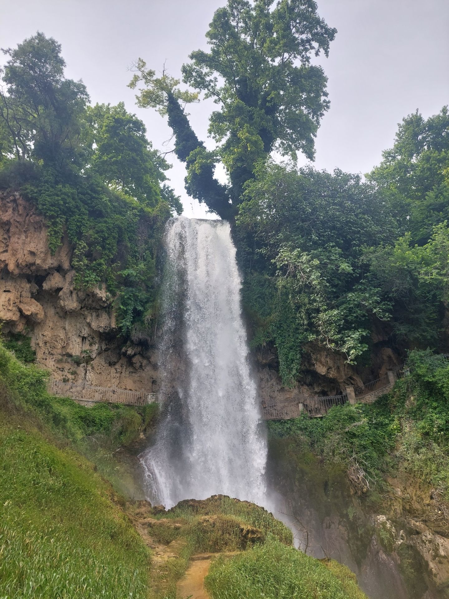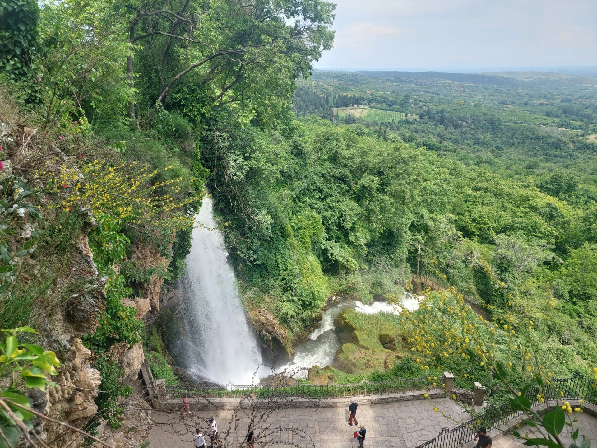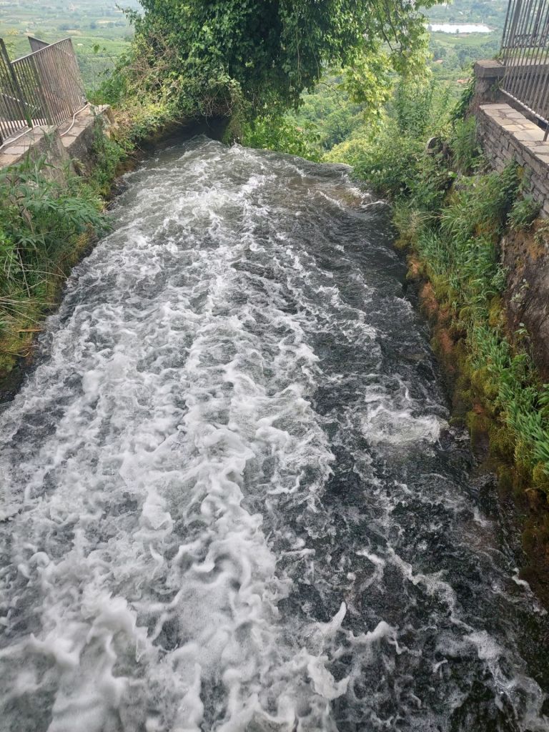 Tournons la cassette le beau temps reviendra », musique toujours, parce que la route est monotone, j’écoute chanter Angélique Ionatos, enfant de réfugiés grecs, qui sait maintenant s’il y a de la place au ciel pour les poètes. De la route aux chemins poussiéreux, nous roulons au milieu de champs façonnés pour la culture du riz, tout un système complexe pour irriguer les parcelles rectangulaires, allié à un savoir-faire ancien, je reconnais le génie humain. Un peu de musique, Vangelis compositeur grec prolixe, l’apocalypse des animaux musique composée pour une série de Frédéric Rossif, je l’ai écouté en boucle, nostalgie, les plus jeunes peuvent consulterWikipedia. Le parcours se poursuit sur une route, plus de poussière, nombreux vergers, fruits mûrs ou bien développés, nous nous régalons de cerises tombées du camion dans un virage, puis la montée attendue se précise, Edessa est sur une falaise, nous délaissons la voie proposée trop pentue sur un mauvais revêtement et montons avec les voitures, raide, mais je ne mets pas pied à terre pour cette nouvelle tour Montparnasse ! Edessa est célèbre pour sa cascade que nous allons voir, fin de la journée en terrasse de restaurant grec, repas de poissons, accompagné de sa traditionnelle salade grecque, dessert offert dont le fameux touloumpakia.