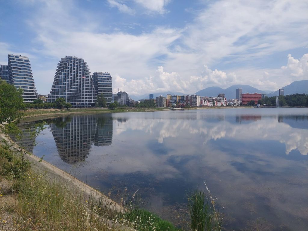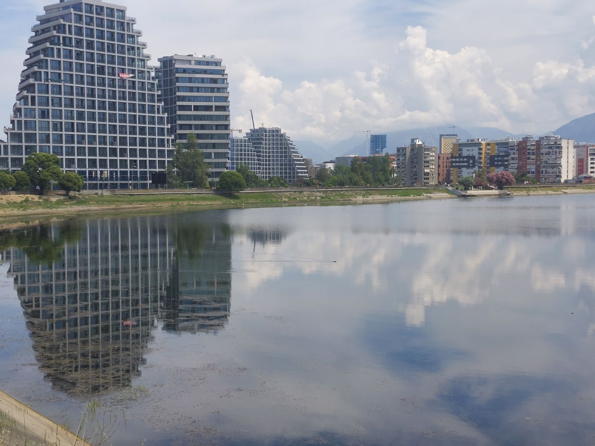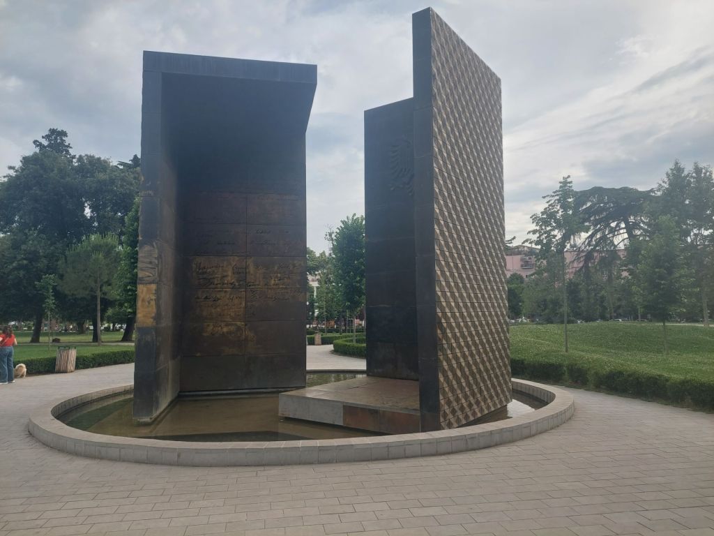 La première image que je garde de Tirana, c’est l’immense place Skanderbeg, héros national de résistance à l’empire Ottoman, dont on a célébré les 500 ans de la mort en 1968 par une monumentale statue équestre, le lieu au centre de la ville et du grand boulevard est assez étrangement déserté en son milieu qui paraît vide, trop grand peut-être, les gens ont tendance à le contourner par les côtés. Autour de nombreuses hautes constructions en cours d’achèvement, je sens de la recherche architecturale en plus de la taille qui en impose, une recherche d’unité, d’identité pour une ville qui a peu de bâtiments anciens. La mosquée Et’hem Bey et la tour de l’horloge paraissent un peu perdues dans cet environnement de gigantisme. La circulation est intense, le klaxon omniprésent dans les embouteillages, mais la règle est qu’on respecte les nombreux promeneurs sur les passages piétons. Dans la partie qui accueille présidence et ministères, ce sont des constructions neoclassique ou staliniennes, la grande mosquée Namazgah est en cours de construction, la cathédrale moderne Saint Paul dont la statue de mère Térésa, Albanaise, accueille le visiteur, est très récente. Proche de ces monuments, je m’étais promis hier de gravir les pentes de la neo-pyramide blanche, mais son accès est interdit lors de notre passage du jour. Autre particularité de la ville, un goût pour l’art moderne, dont on trouve quelques œuvres dans la ville. Nous sommes allés jusqu’au grand parc de Tirana, balade à travers les allées qui sillonnent l’endroit très fréquenté et un peu frais sous l’ombre des arbres. Dans les rues des bouquinistes, dont un tout proche de notre hébergement propose quelques exemplaires de mein kampf. Pour le promeneur, nombreuses terrasses de bar, des petits commerces de bouche, restauration rapide, fruits et légumes, une ville jeune, moderne, qui se transforme pour, entre autres, accueillir le touriste. Demain nous quittons l’Albanie pour rejoindre l’Italie, le voyage continue.