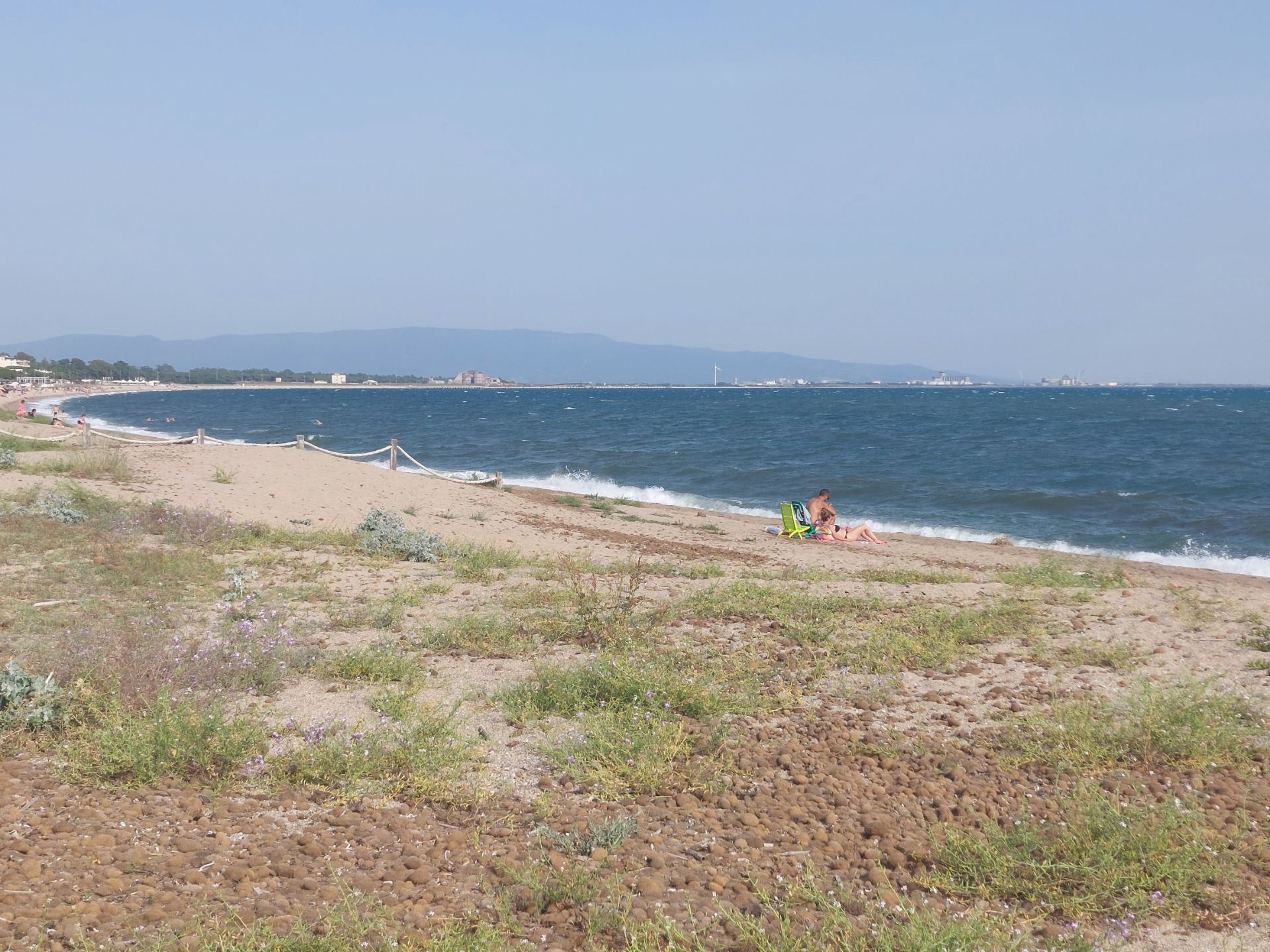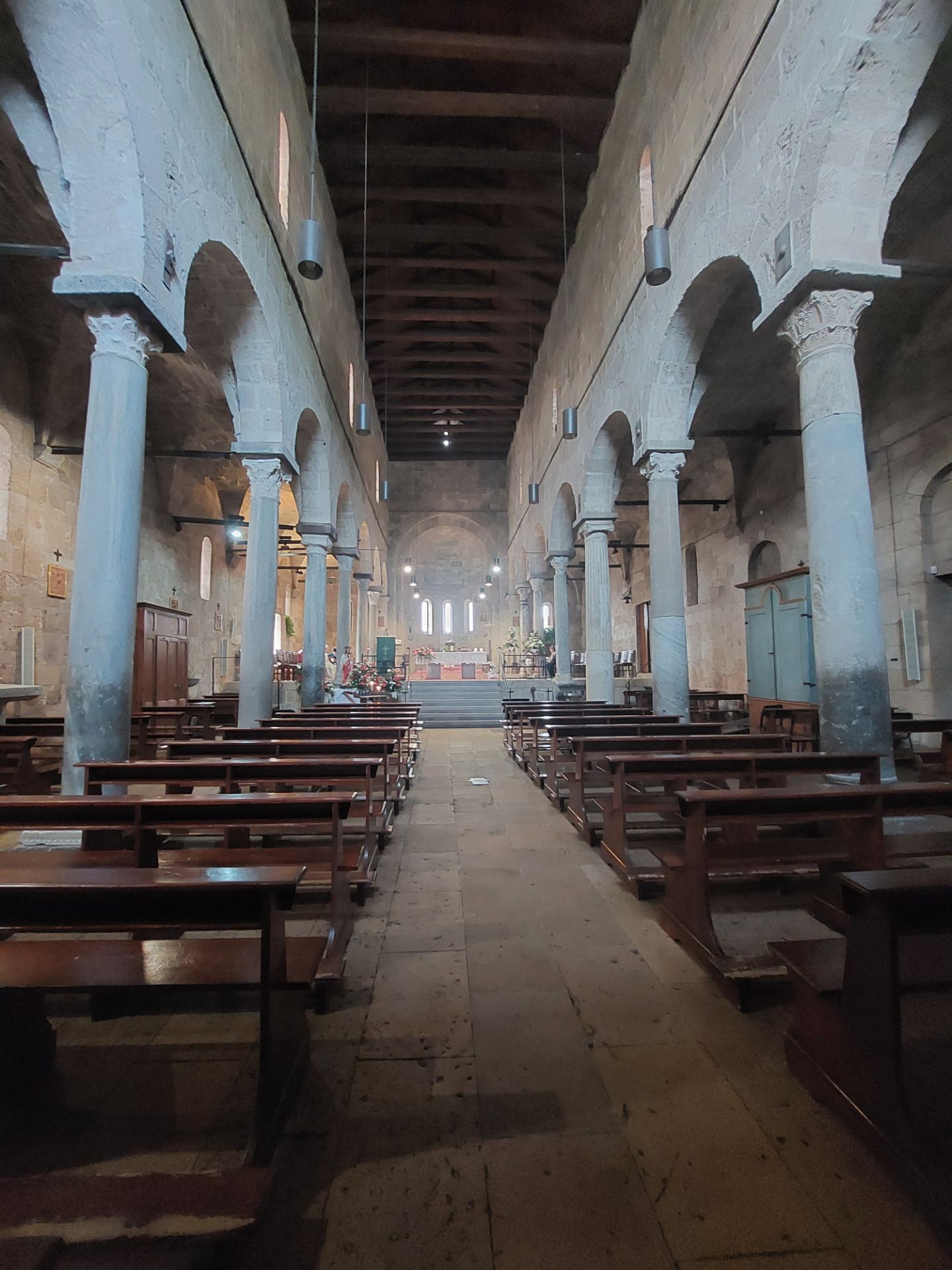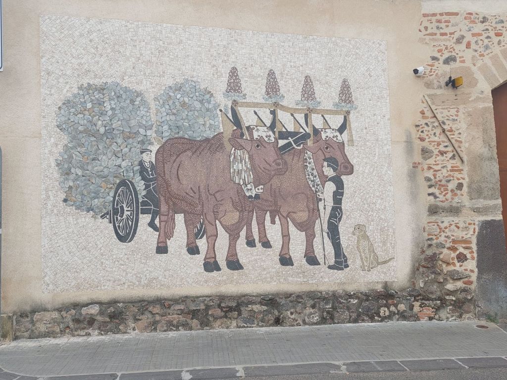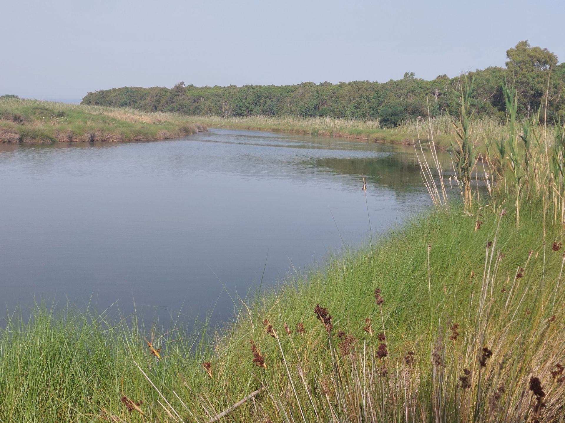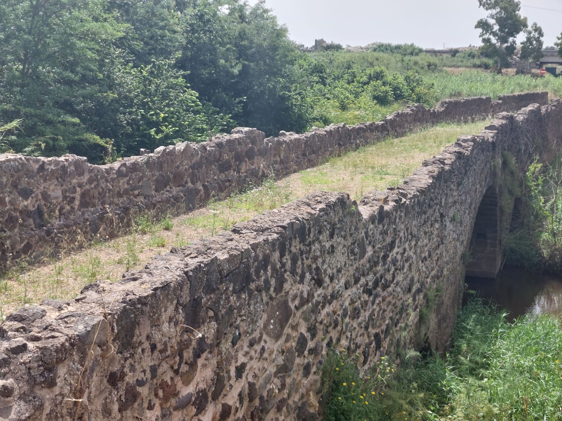 Refus d’obstacle ce matin devant les étapes prévues pour les quatre jours à venir, Pierre parcourt la montagne et la côte Est, pendant que je me réserve le bord de mer de la côte Ouest, avec trois fois moins de distance, ce qui a motivé le détour que je fais, nous nous retrouverons vendredi à Porto Torres pour le retour vers la France. Notre hôtesse a gentiment accepté de nous servir le petit-déjeuner à 6 heures et nous ne l’avons pas regretté, c’était fin et copieux, ce qui nous a permis de prendre la route au lever du soleil que nous avons vu apparaître, disque blanc, derrière les montagnes. Nous prenons d’abord le même itinéraire pour nous séparer vers Oristano ou dès que Pierre accélérera, nous longeons la nationale sur une contre allée qui doit être l’ancienne voie très peu fréquentée, nous entendons juste le trafic. Nous croisons un espace brûlé, l’incendie doit être récent, quelques fumées s’élèvent encore. Santa Giusta, grand lac, un curieux navigateur de pierre tente de le rejoindre depuis la rive, j’aperçois au loin un flamant rose, étonnamment seul. Avant de rejoindre le bord de mer, je voulais voit un exemplaire de nuraghe, tour typique de Sardaigne, j’en repère une sur la carte aune vingtaine de kilomètres de Orastino, juste avant la montagne, ce qui me va bien, malheureusement je ne verrai qu’un tas de pierres, tant pis, j’ai pu profiter d’une petite route agréable, de villages sympathiques, retour vers Orastino et je me dirige vers Torregrande, ville du bord de mer où j’ai réservé un hébergement. Promenade dans le parc archéologique du golfe phénicien, ce sont des lagunes qui avaient été utilisées en pêcheries, encore en service, en cours de réhabilitation. Retour par le bord de mer, la plage est en plein vent, ça rafraîchit un peu l’atmosphère.