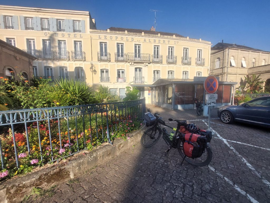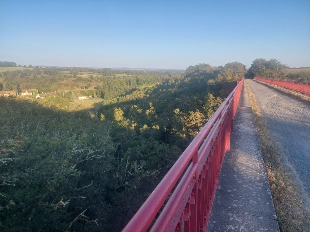 Chambonchard, traversée du Cher (la rivière) et passage de l’Allier vers la Creuse (les départements !), 90 km/h maxi annonce le nouveau département, promis je ne les dépasserai pas dans la montée de 5km que m’annonce le gps pour atteindre Evaux les bains, petite station thermale aussi, plus modeste posée sur son piton rocheux, surmonté d’une vaste église (ancienne abbatiale) sur laquelle est édifié un haut clocher. Petite halte, rencontre d’un cycliste bien moins lourdement chargé et beaucoup plus véloce, il a terminé son parcours du jour (130 km), alors que j’en ai parcouru 45. Il participe au Brevet des provinces françaises (BPF) qui permet de découvrir les trentes-six anciennes provinces françaises (Berry, Marche, , Auvergne par exemple) en joignant six sites caractéristiques par département. Discussion autour du vélo, on se parle, mais plutôt à l’arrêt. Descente vers Chambon sur Voueize, le vent est de plus en plus fort, l’orage menace, j’hésite à pique-niquer, craignant la météo, puis je me pose près de la Voueize après avoir délaissé l’aire au bord de la Tardes son affluent. Je repars sans pluie vers les Cabosses lieu-dit de Lessat, l’hébergement est dans une ancienne ferme tenu par Helen, Anglaise, le lieu un peu au format auberge de jeunesse est fort joliment décoré, ma chambre est dans la porcherie !